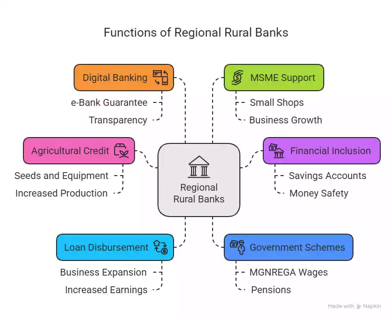 Regional Rural Banks in India have many important functions which benefit the rural areas. After reading, I came to know that some of the main functions of these banks are as follows: