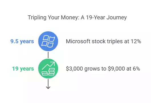 Example: If Microsoft stock’s growing at 12% annually, it’ll triple in 114 ÷ 12 = 9.5 years.