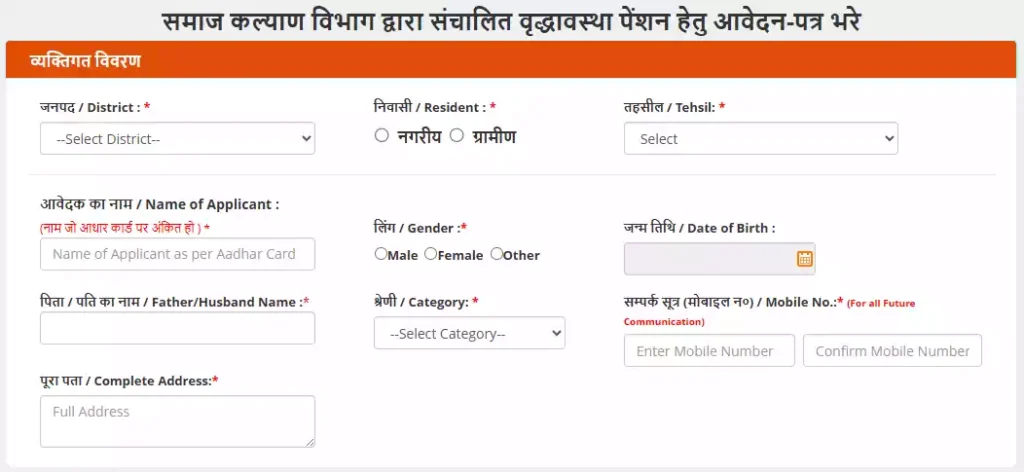- On the main page, you will see the options of Vridhavastha Pension, Nirashrit Mahila Pension, and Divyang Pension. Click on the scheme you want to apply for.